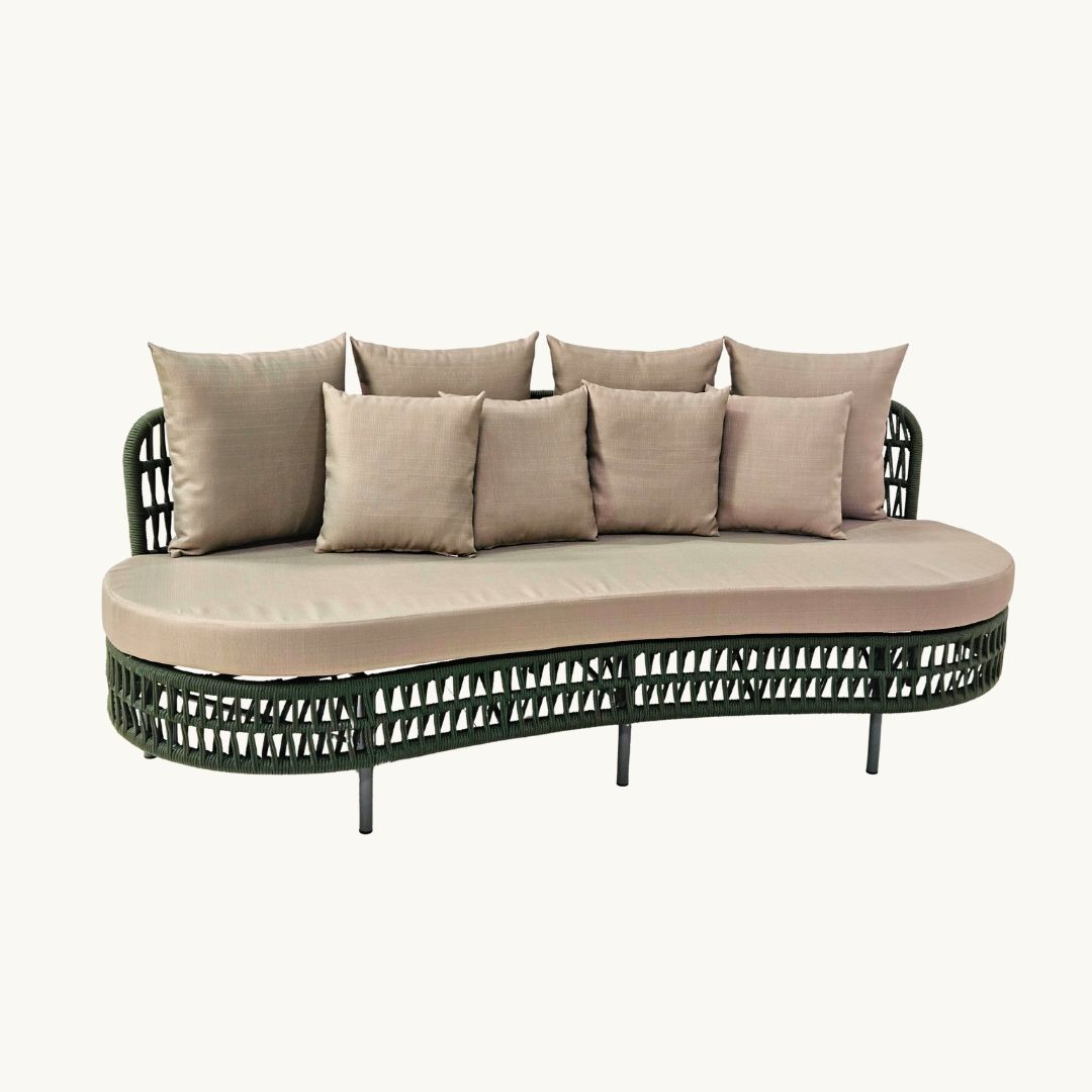 O Sofá Susan combina elegância e sofisticação em um design impecável. Sua estrutura em alumínio tubular com pintura eletrostática garante resistência e durabilidade, enquanto o acabamento em corda náutica adiciona um toque moderno e refinado. As almofadas de assento e encosto, revestidas em tecido impermeável, proporcionam conforto e praticidade. Perfeito para áreas internas e externas, esse sofá é a escolha ideal para quem busca um ambiente estiloso e acolhedor.